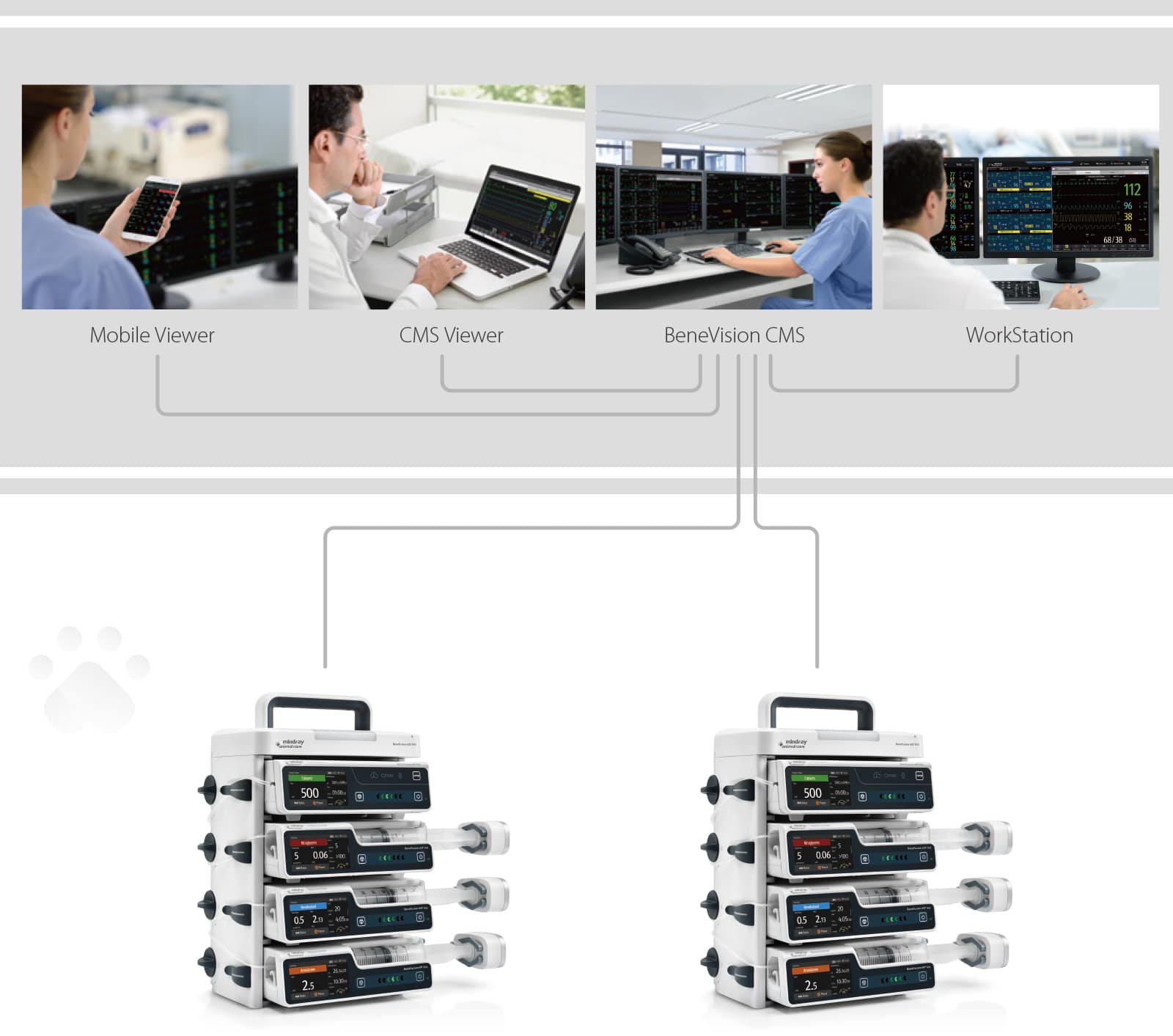 The BeneFusion eSP and eVP Vet all in one system satisfy various infusion purposes by combining all functions together. The system offers Integrated Central Monitoring providing one-stop monitoring of all patients’ vital signs and infusion treatment details, providing comprehensive information for the veterinarian to improve the quality of patient care.