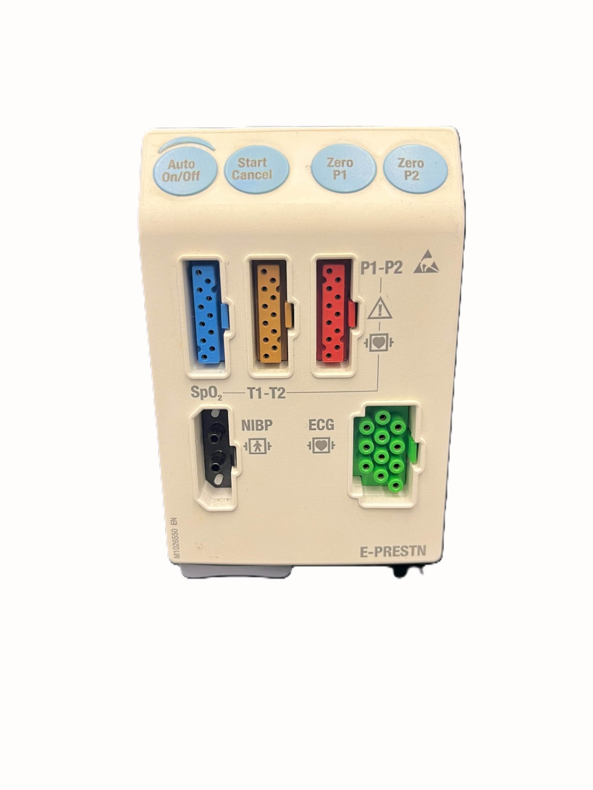 GE E-PRESTN-00 is a multiparameter module which can measure ECG, two Invasive blood pressures, SpO2, two Temperatures, Non-invasive blood pressure and Impedance Respiration.