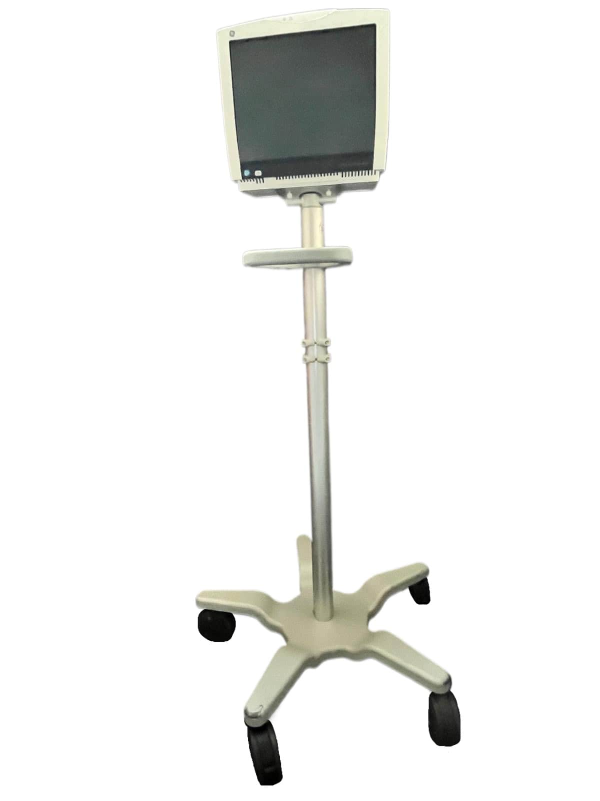 GCX durable mobile platform with 10 degree fixed tilt with a fixed height monitor trolley. Features a 5-Leg base (with locking EuroCastors), pull handle with padded grip and slide-in Mounting Plate for bottom mounted devices.